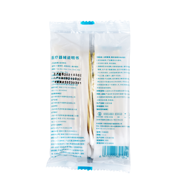 醫(yī)用棉簽,滅菌。50支/包,1400包/箱,70000支/箱。保質(zhì)期2年,棉簽長度約10cm。