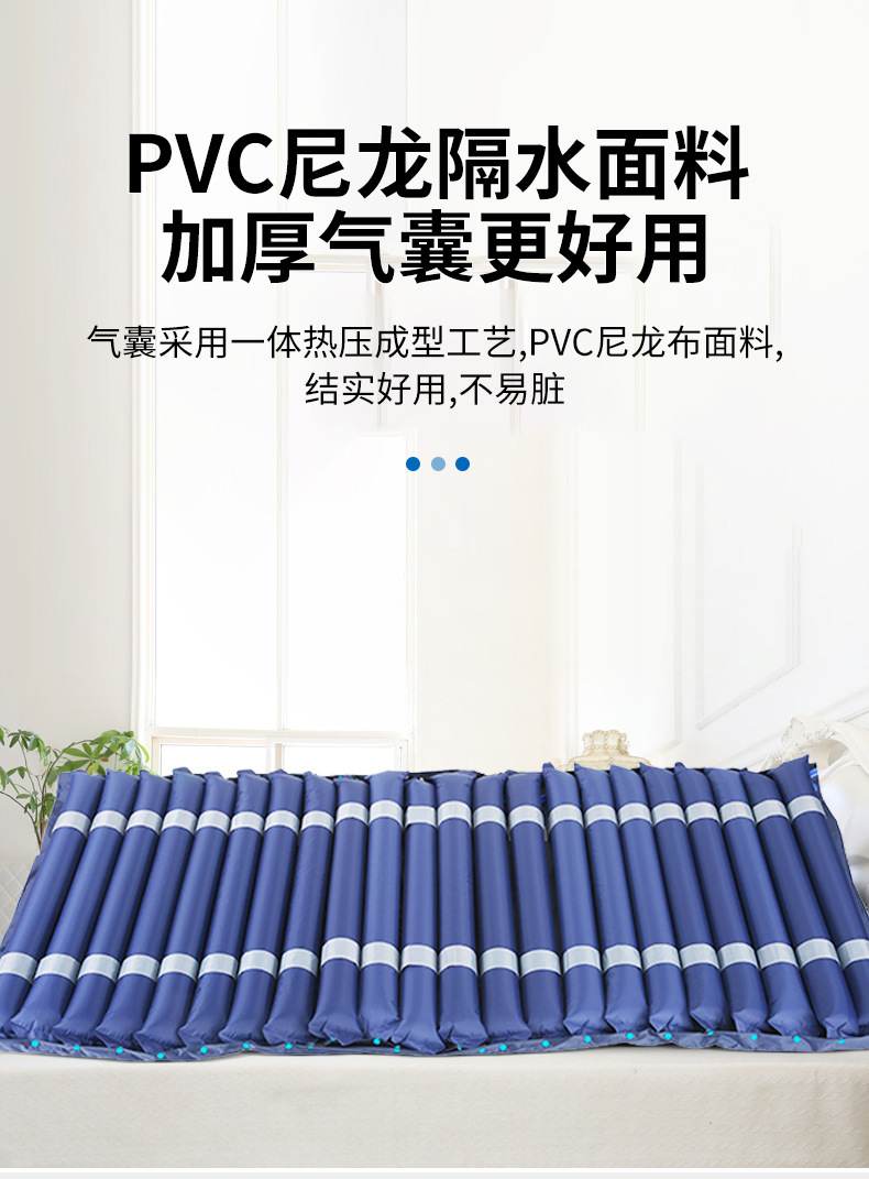 1.將防褥瘡氣墊放在床墊上時,對棕床和鋼絲床務必要放在一層墊被后再將氣墊放上去,以免氣墊被硬質的棕床和鋼絲床磨破。